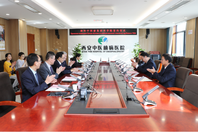 为贯彻落实教育部“随企出海”政策,积极响应第二届中国—中亚峰会合作倡议,促进学校产教融合高质量发展,9月24日上午,我校与西安中医脑病医院、中国—哈萨克斯坦传统医学中心三方代表在西安正式签署合作协议,共建“陕西能源职业技术学院海外中医康复技术学院”。我校党委副书记、校长朱忠军,西安中医脑病医院党委书记、院长宋虎杰,中国—哈萨克斯坦传统医学中心负责人叶尔兰及我校相关职能部门负责人出席签约仪式。