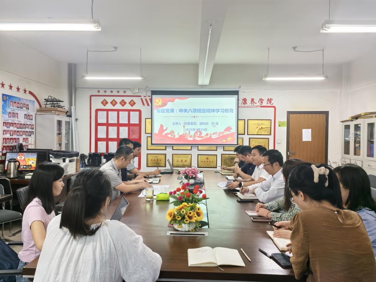 为扎实推进全面从严治党,持续深化作风建设,2025年5月15日,学校党委委员、副校长刘浩走进医学康养学院,为学院中心理论组同志带来了一场意义深远的中央八项规定精神专题党课。此次党课紧扣时代脉搏,紧密联系学校工作实际,为学院党员干部进一步强化纪律意识、改进工作作风注入了强劲动力。