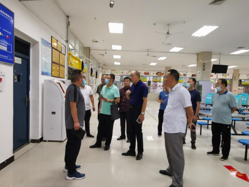 任向明副书记一行先后实地查看了防疫通道、学生食堂、学生公寓、教室、图书馆、校医院、学生浴室等场所,详细了解了校园安全管理、公共区域清洁消毒、食品安全、食堂管理、学生公寓提升改造项目施工进展情况和防疫物资保障情况。