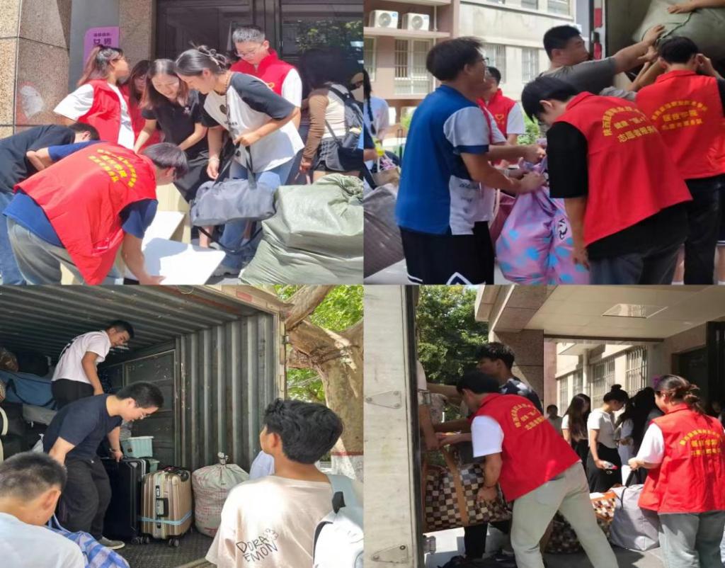搬迁过程中,学生处与各二级学院通力合作,不辞劳苦,克服困难,调度大巴车及行李托运车8辆,组织志愿者队伍,为搬迁到临潼校区的学生提供助力。所有车辆每个座位上都为学生准备便餐以及饮用水,学生处全体人员、各学院辅导员老师、学生志愿者,为学生提供了清理物品、搬运行李、装车、发放简餐等暖心服务,为学生搬迁提供便利。全校师生共同描绘出一幅“上下同心,攻坚克难”的生动画面。