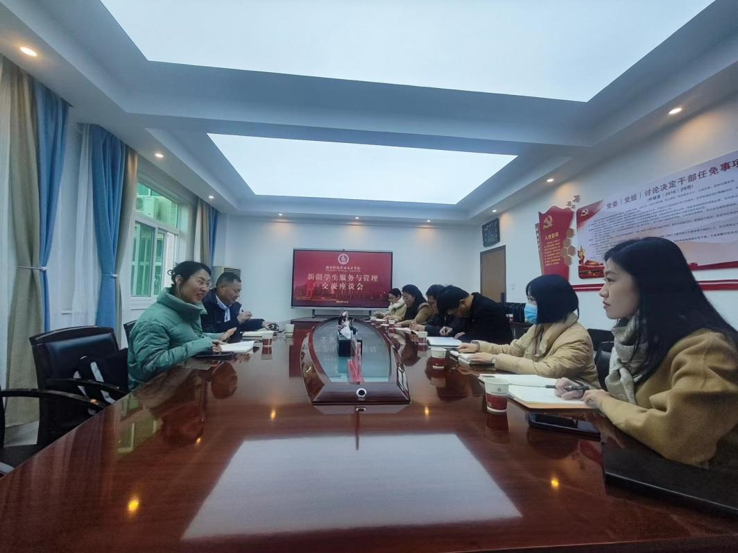 冯超对庄玮一行到来表示热烈欢迎,并详细介绍了我校新疆籍学生日常的教育管理工作。随后,双方就学校学生安全稳定工作、新疆籍学生学业及生活困难学生的帮扶、心理问题学生的疏导、党员发展、新疆籍学生教育管理服务工作的意见和建议等方面进行了深入的交流探讨。新疆驻派的两位老师高度肯定了我校对新疆籍学生的管理工作,感谢我校在新疆籍学生管理上作出的贡献。冯超表示,将进一步做好新疆籍学生及民族教育管理服务工作,全面促进少数民族及新疆籍学生成长成才。