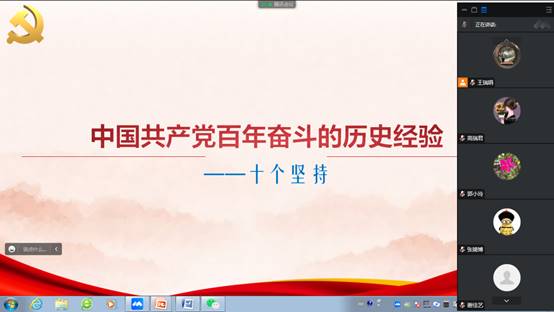 党课主题为《中国共产党百年奋斗的历史经验——十个坚持》,经过长期实践,中国共产党积累了坚持党的领导、坚持人民至上、坚持理论创新、坚持独立自主、坚持中国道路、坚持胸怀天下、坚持开拓创新、坚持敢于斗争、坚持统一战线、坚持自我革命的宝贵历史经验,这是党和人民共同创造的精神财富,必须长期坚持,并在实践中不断丰富和发展。