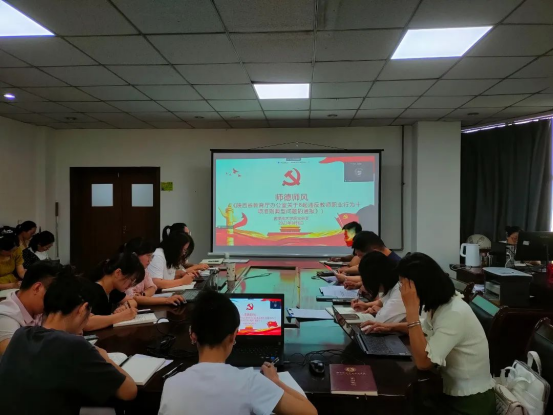9月6日,党总支副书记冯毅领学《陕西省教育厅办公室关于8起违反教师职业行为十项准则典型问题的通报》,以失徳违纪行为典型案例为警示,告诫教师常怀敬畏之心,恪守师德规范,维护师德纪律的严肃性,为人师表,立德树人,争当“四有”好老师和时代“大先生”。