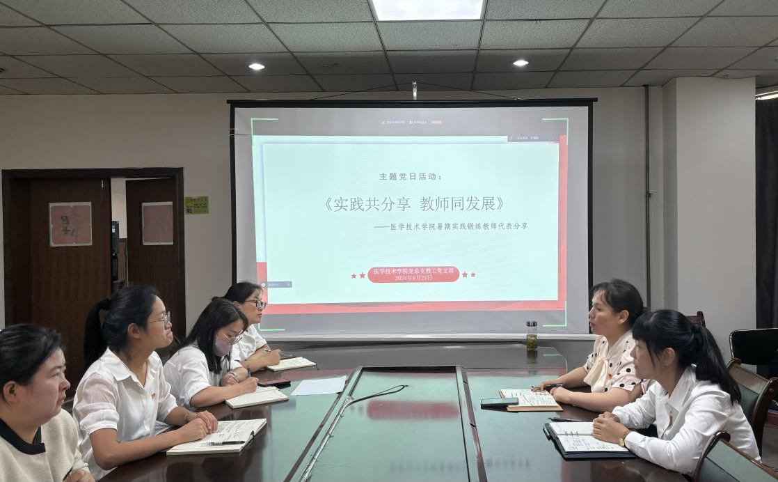 9月25日下午医学技术学院教工党支部组织暑期实践锻炼党员教师代表作实践经验分享主题党日活动,教工党支部全体教师参加。