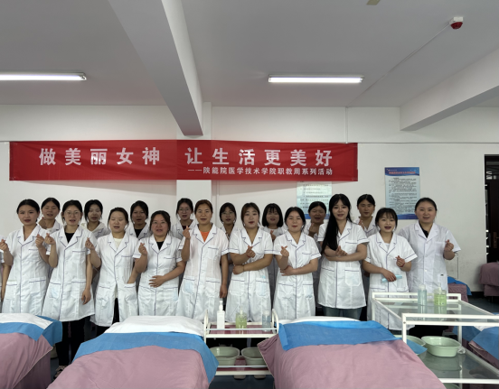 5月23日,医学技术学院医学美容技术专业在第二实训楼301美容光电仪器操作实训室成功举办职业教育活动周-做美丽女神,让生活更美好服务活动。参加人员有美容教研室主任张荣、美容专业专任教师赵媛媛、李崑瑜以及20名2021级美容专业学生。