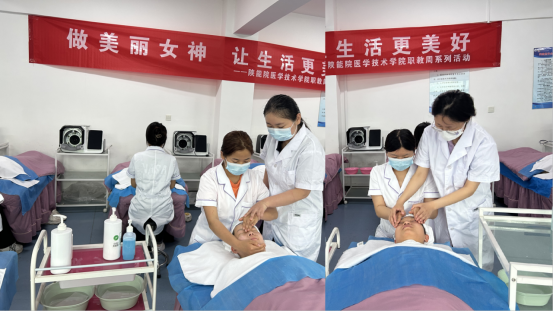 同学们为学校师生免费提供面部按摩、头部按摩等服务,受到了大家的广泛认可,更好的宣传了医学美容技术专业。