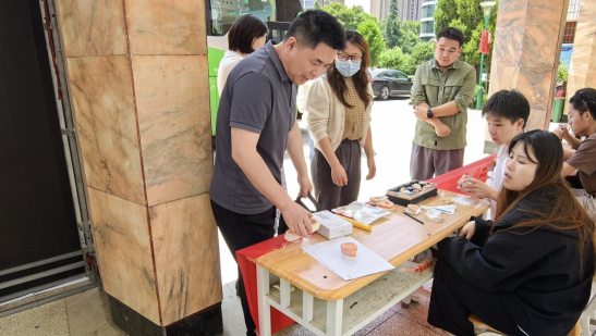 活动现场学生展示了牙体雕刻过程,帮助师生们更好地了解牙齿形态,同时展示了牙线、冲牙器等口腔护理用品,以及固定义齿、可摘局部义齿和全口义齿等常见的修复体。