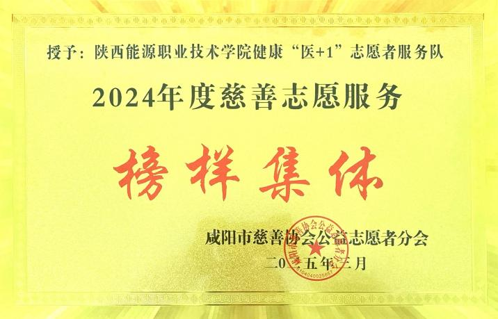 近日,咸阳市慈善协会公益志愿者分会召开2024年度慈善志愿服务年度工作部署暨表彰大会,总结全市2024年度志愿服务工作,我校医学技术学院健康“医+1”志愿服务队凭借在公益领域的突出表现被授予咸阳市慈善志愿服务“榜样集体”。