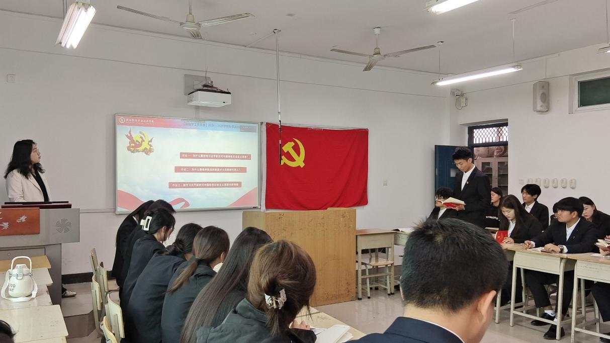 支部书记蒋文作了《习近平新时代中国特色社会主义思想总论》党课,从时代背景、理论活力及体系三方面深入解读,要求全体师生深刻领悟并贯彻于日常学习、工作和生活中。