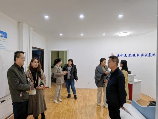 会后,一行人参观了学校医学美容技术实训基地、医学影像技术实训基地、口腔医学技术实训基地。