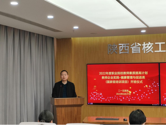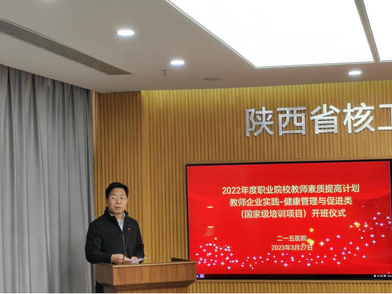 3月27日上午,学校联合陕西省核工业二一五医院承办的2022年度陕西省职业院校教师素质提高计划教师企业实践——健康管理与促进类(医学影像技术)培训班在核工业二一五医院举行开班仪式。医院副院长、工会主席左毅、学校医学技术学院党政领导及参训学员共计20余人参加,仪式由医学技术学院副院长梁爽主持。