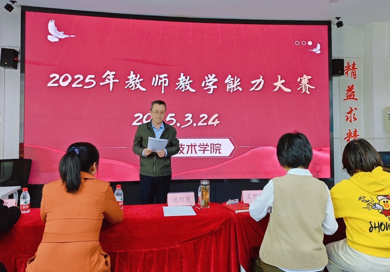 2025年3月24日,医学技术学院在二号实训楼201实训室成功举办教学能力大赛,学院党政领导、评委及教师代表30余人参与,比赛由学院教学办副主任纪恩涛主持。