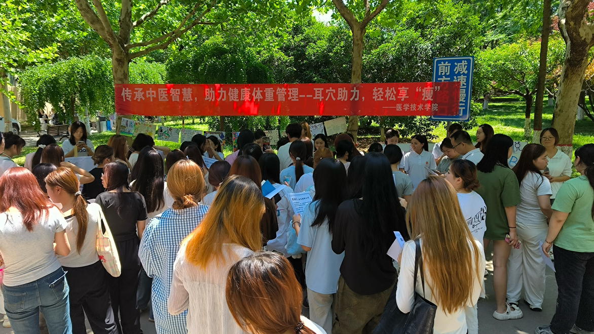 6月5日中午,医学技术学院在临潼校区教学楼林荫大道上开展“传承中医智慧,助力健康体重管理”耳穴篇主题活动。