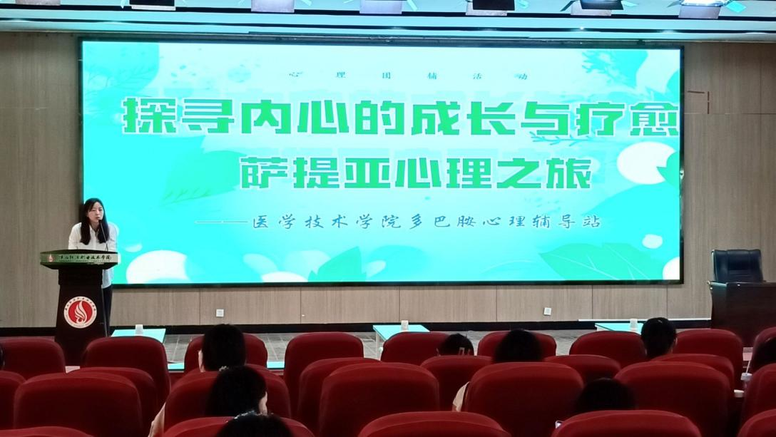 6月18日下午,为缓解同学们期末考试来临之际因学业压力带来的焦虑,医学技术学院多巴胺心理驿站在实训楼六楼报告厅举办“探寻内心的成长与疗愈—萨提亚心理之旅”心理团辅主题活动,学院120余名师生共同参与了此次心灵探索之旅。