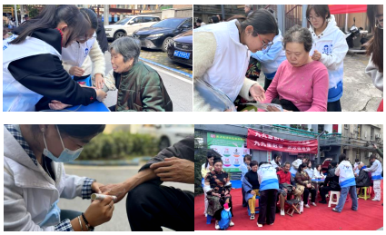 活动现场暖意融融。在义诊专区,学生志愿者充分发挥医学专业优势,为老人提供血压测量、健康咨询、艾灸、中医推拿等服务,耐心讲解秋季传染病预防、日常保健知识,针对不同老人的身体状况给出个性化健康建议,用专业素养赢得老人认可。