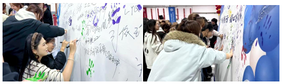 “手印签到”环节,师生以五彩颜料在白板印下专属手印,斑斓印记既定格了本次拓展的温暖记忆,更象征着医技师生“凝心聚力 并肩同行”的团队底色。